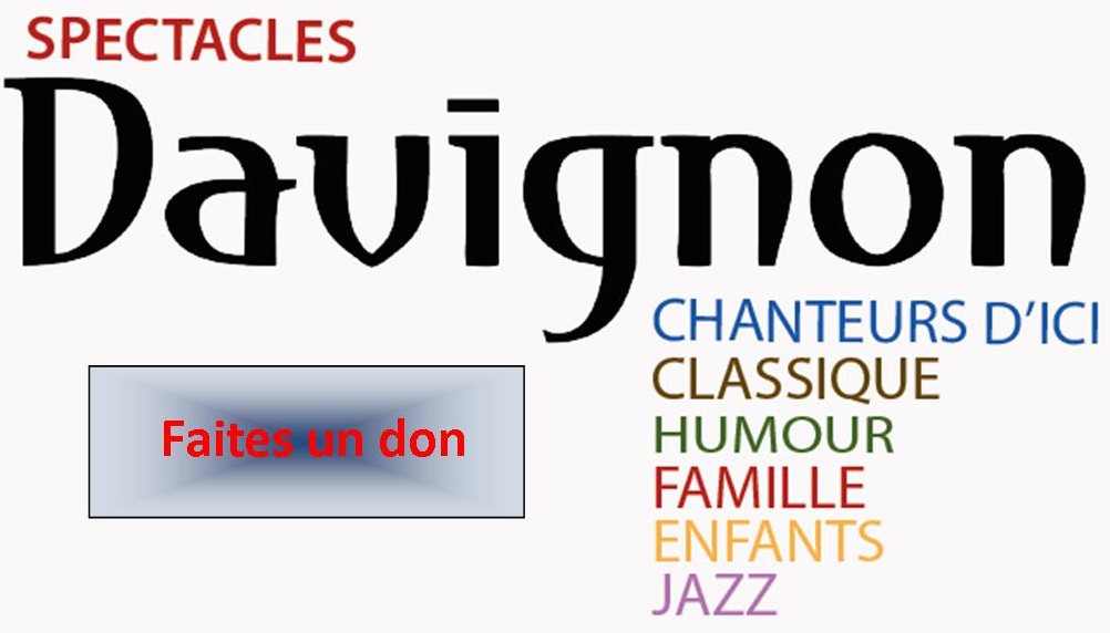 Spectacles Davignon est un OBNL qui a pour mission de rendre la culture accessible pour tous. Pour nous aider dans notre mission. Les dons sont toujours acceptés en échange d’un reçu d’impôt.